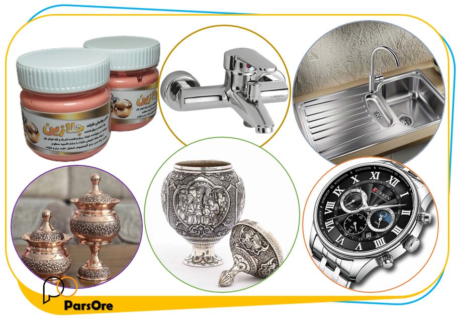 - براقسازی ظروف تزئینی و سنتی: مثل سینی، گلدان و سماورهای مسی و برنجی